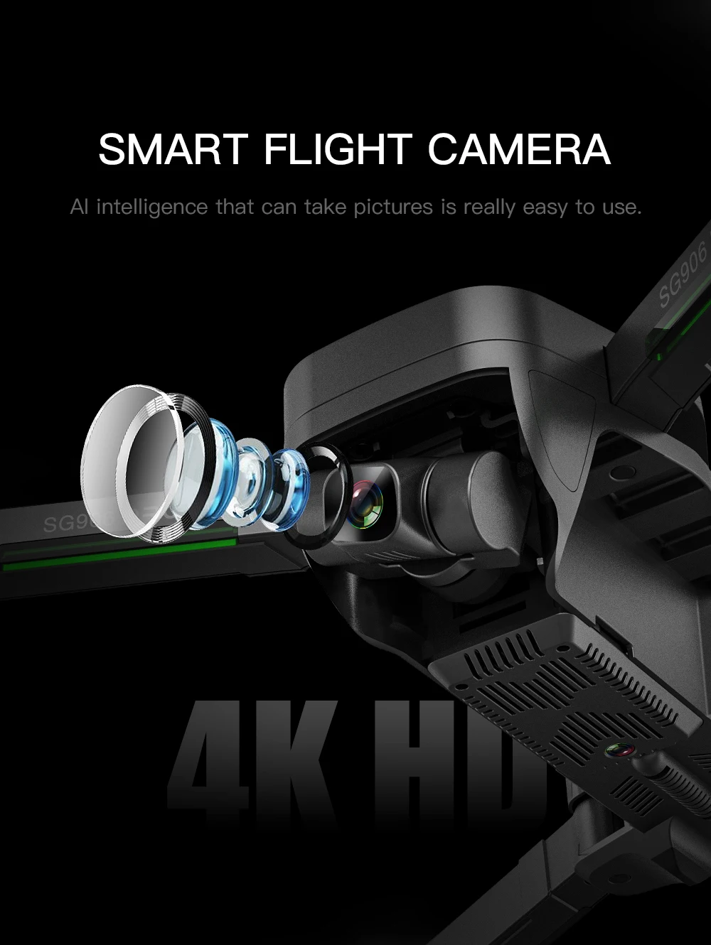 1. Исследуйте новые места и улучшайте свои навыки видеографии с помощью дрона камеры SG906 Pro 4K высокой четкости. Он может лететь в течение 26 минут непрерывно и снимать удивительные видео высокой четкости при 25fps.