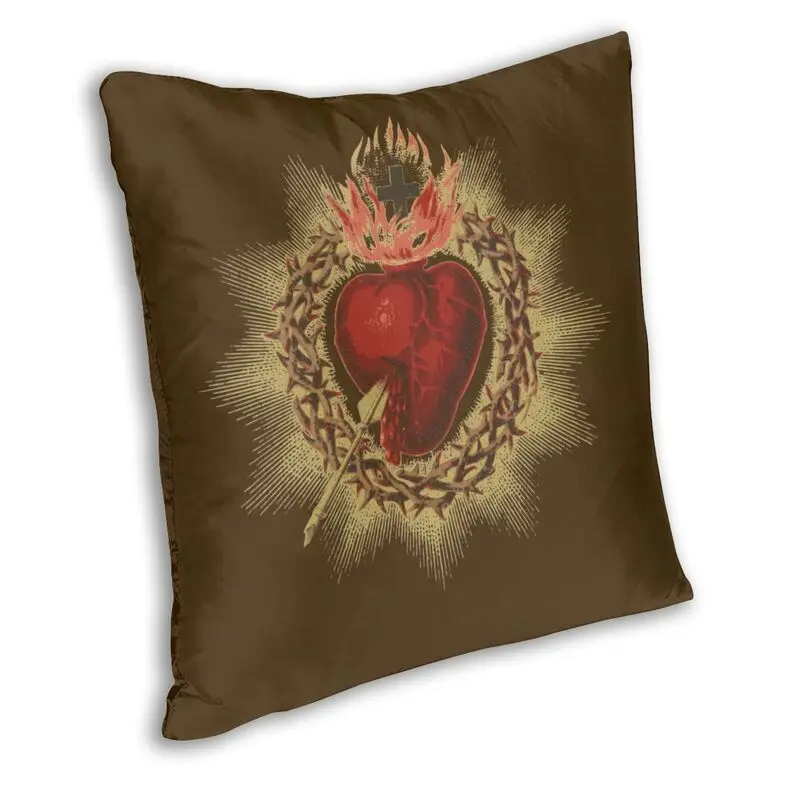 Чехол для подушки с изображением Священного Сердца искусственной кожи, христианская напольная подушка для дивана, крутая наволочка для подушки, домашний декоративный чехол