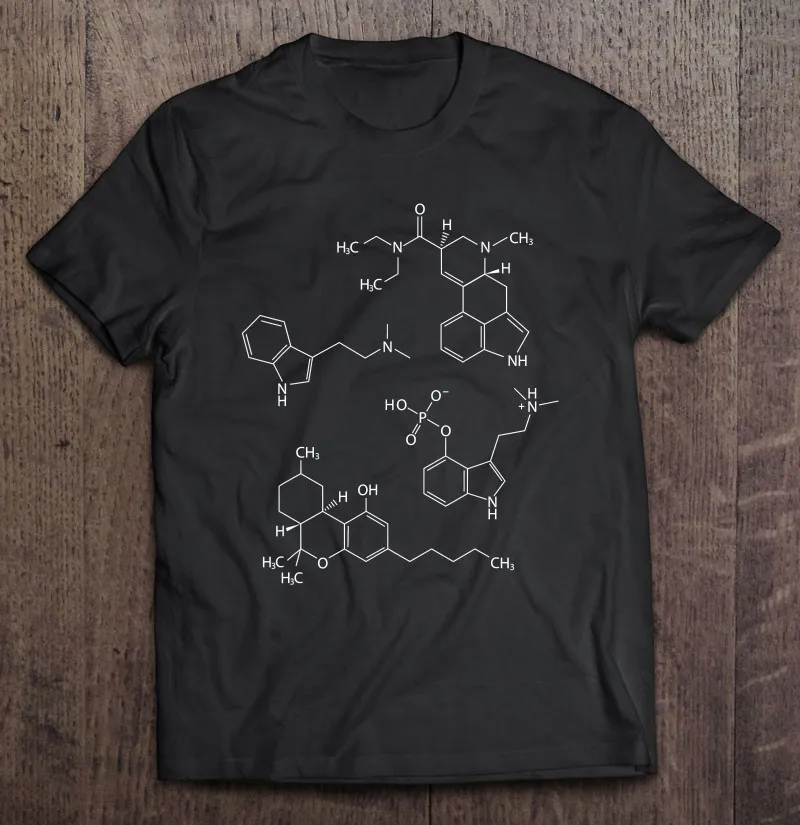 Психоделические молекулы Lsd Dmt Thc наркотики психологот забавная Мужская футболка ностальгия Летние повседневные мультфильмы
