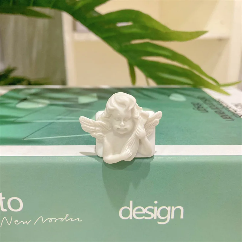 HANGZHI 2021 новые корейские белые каучуковые фигурки Эроса Ангела Скульптура Квадратные Кольца для женщин девочек Летняя Вечеринка Ювелирные изделия Подарки