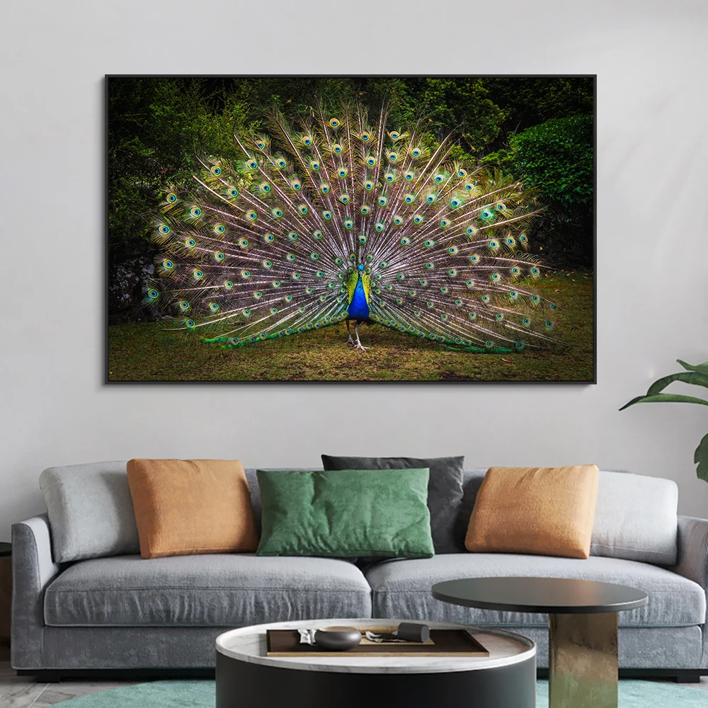 Современная животная живопись на холсте Дикие синие перья Павлин скандинавский плакат и принты настенное искусство для домашнего декора Гостиная без рамки