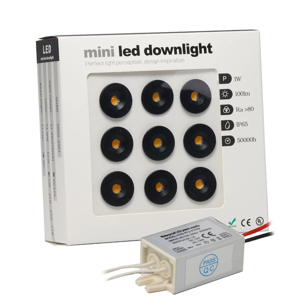 1 Вт IP65 мини светодиодный точечный светильник потолочный прожектор DC12V кабинетный светильник освещение для спальни 9 шт. Светильник с трансформатором AC100-265V