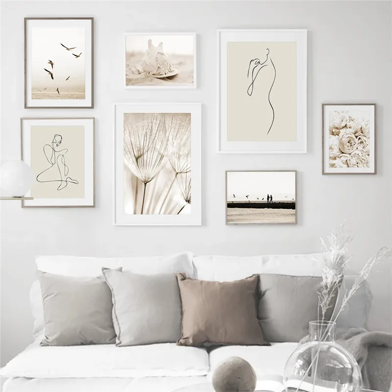 Скандинавские плакаты и принты, белая ракушка, пляжный цветок, Одуванчик, роза, настенная Картина на холсте, картины с Европейским морским пейзажем, домашний декор