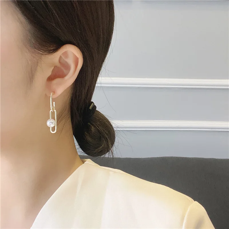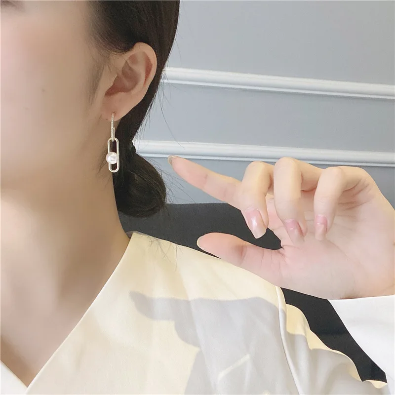 Серьги женские Геометрические с искусственным жемчугом, на цепочке,...