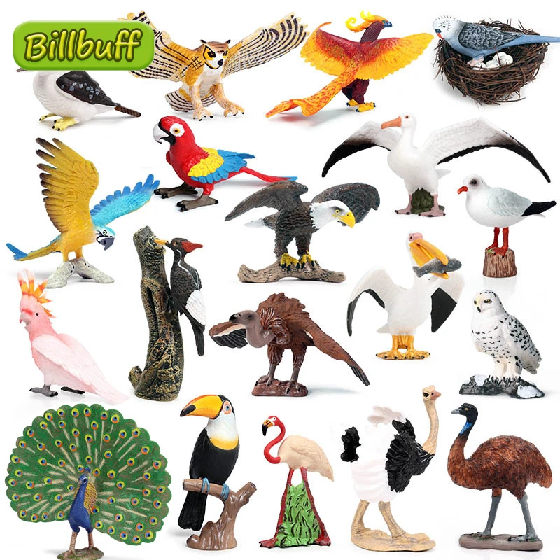 Фигурка животных, орла, совы, фламинго, попугая, павлина, пластиковая модель, развивающая игрушка для детей, подарок
