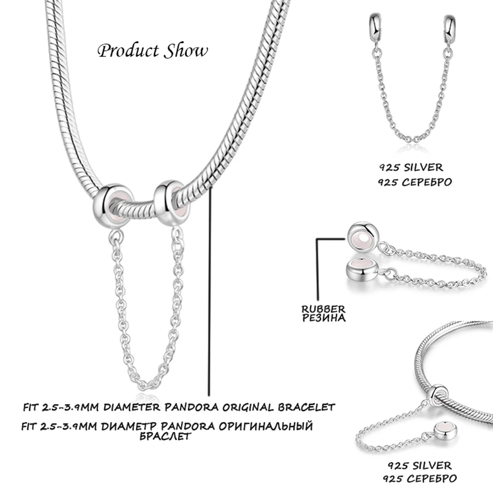 10 шт. GW Серебро 925 Пробка силиконовые безопасные цепи подходят для аутентичных шармов Pandora оригинальные шармы для браслетов для изготовления ювелирных изделий