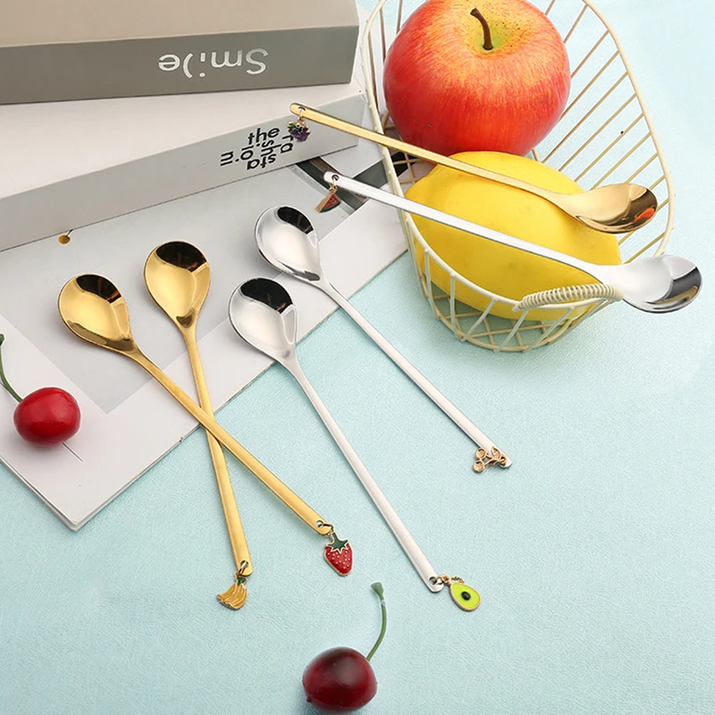 Милые Подвески в виде фруктов десертные ложка для торта Золото Сере...