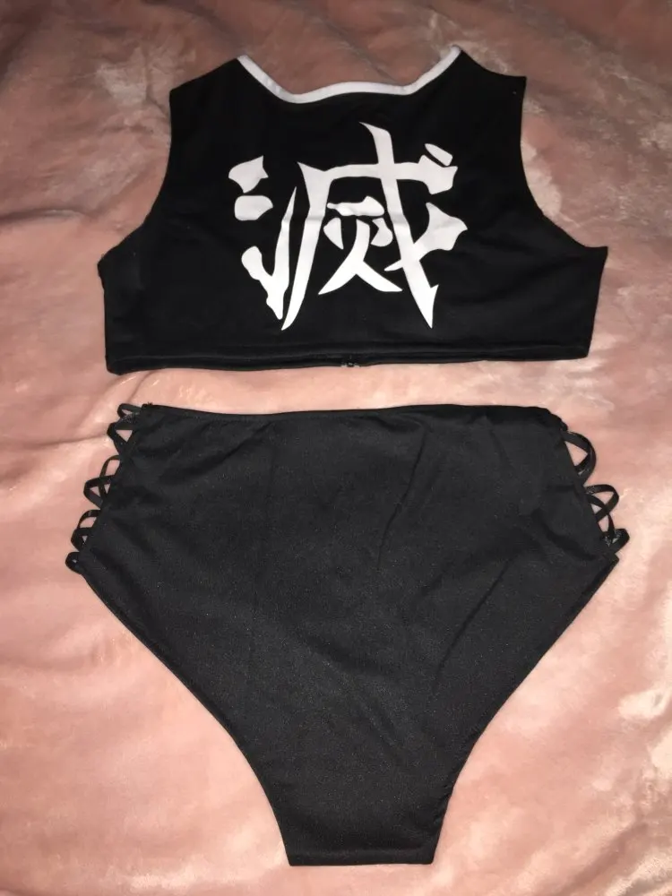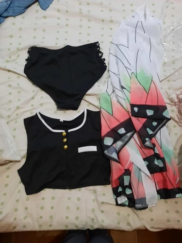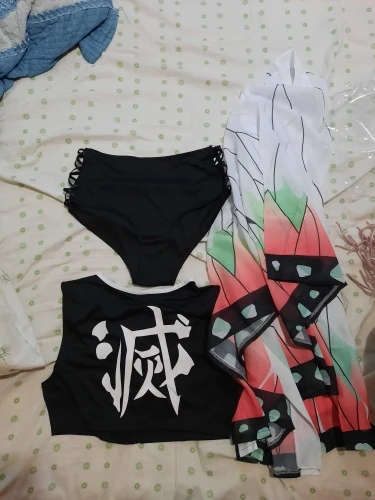 Кимоно для косплея из аниме рассекающий демонов, кардиган с V-образным вырезом, купальный костюм из двух предметов, брелок-бикини, Kimetsu No Yaiba