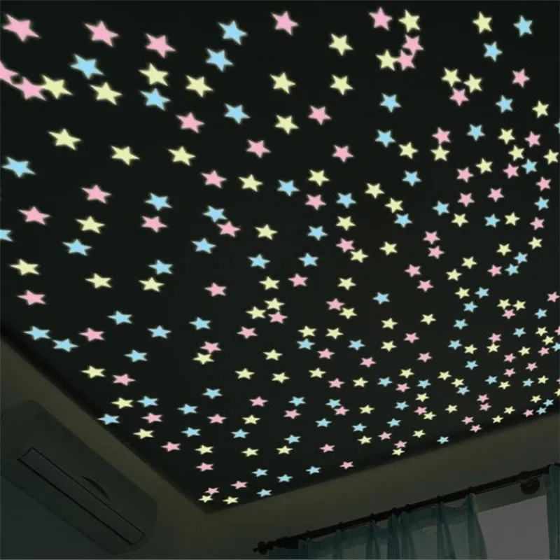 Светящиеся наклейки на стену, 100 шт., наклейки со звездами, наклейки для детской комнаты, красочные флуоресцентные наклейки, домашний декор