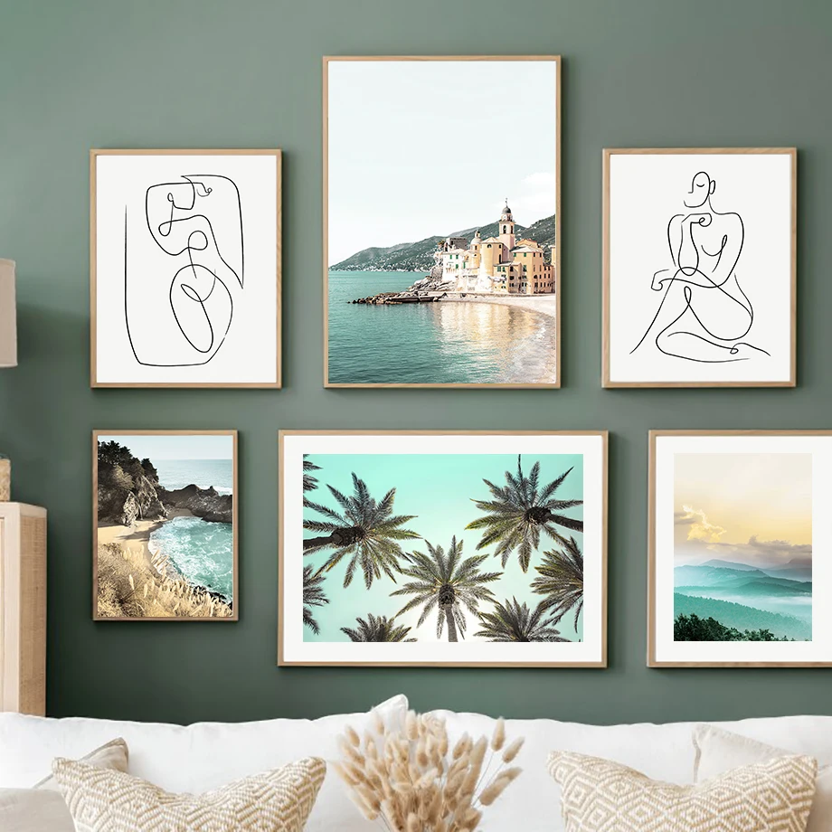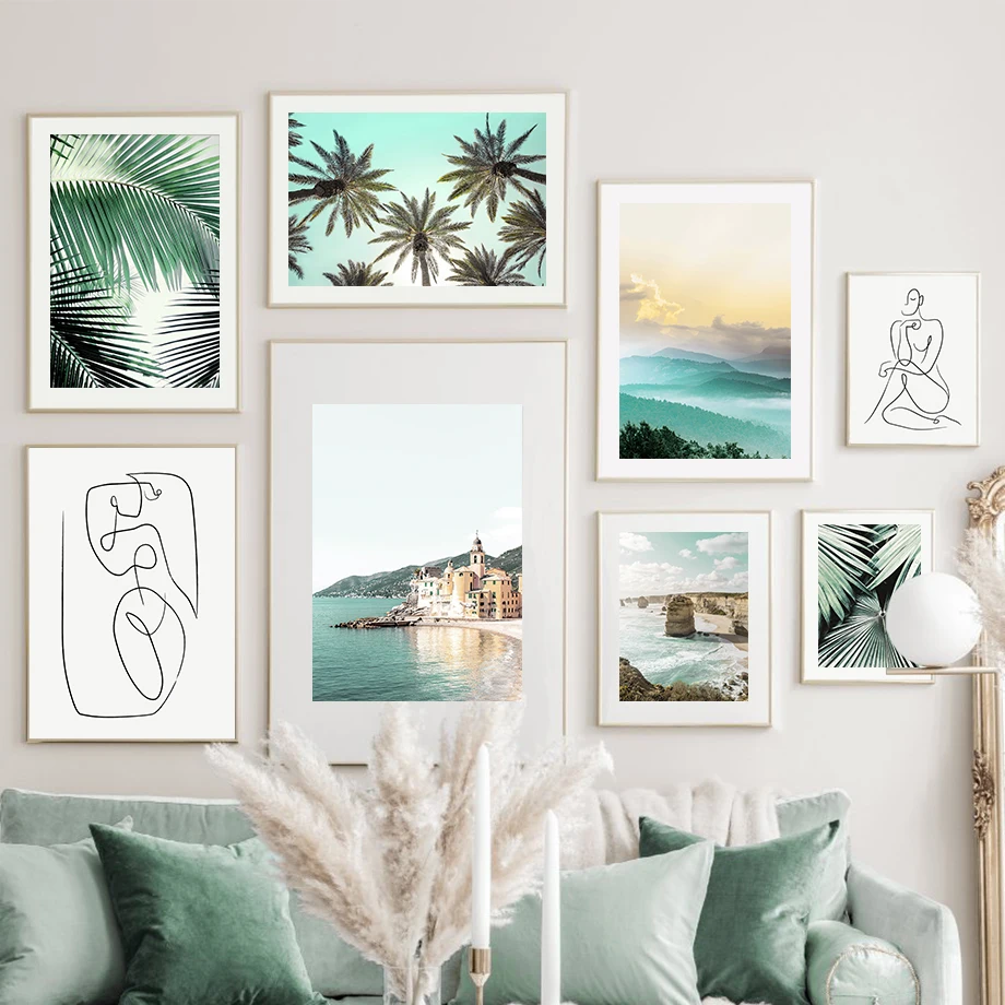 Тропический пляж кокосовое дерево пальмы листья скандинавские плакаты и принты настенная живопись на холсте картины для украшения гостиной