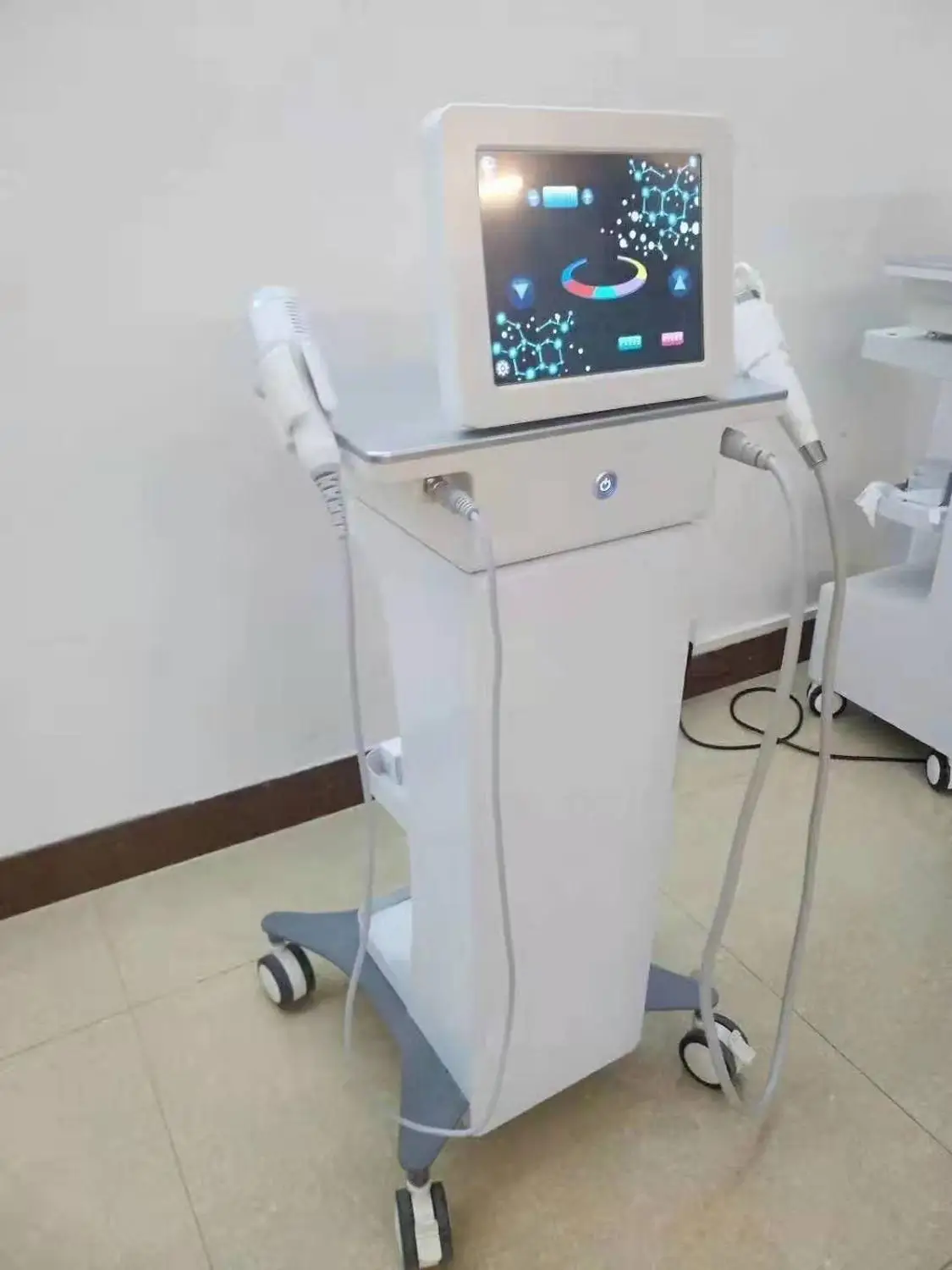 У этой машины есть 2 ручки, РЧ фракционная микро-игла ручка и холодная ручка, функции холодной ручки-это сужение пор, подтяжка кожи, успокоение кожи, снятие усталости