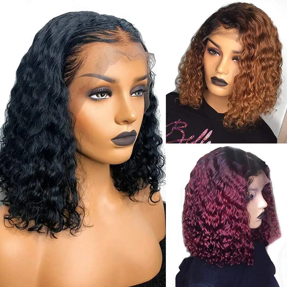 Омбре коричневый кудрявый короткий Боб 13x 4 кружевной передний бесклеевой парик для черных женщин T часть 150% плотность бордовый бразильский Remy человеческие волосы