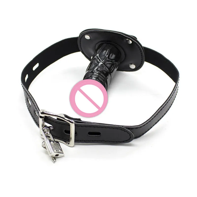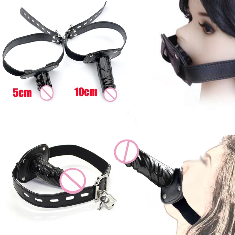 Открытый рот пенис заглушка укуса оральный фаллоимитатор кляп для рта, БДСМ Связывание запираемый секс раб страпон мордочка, кожа Harnes инструмент для фиксации полости рта