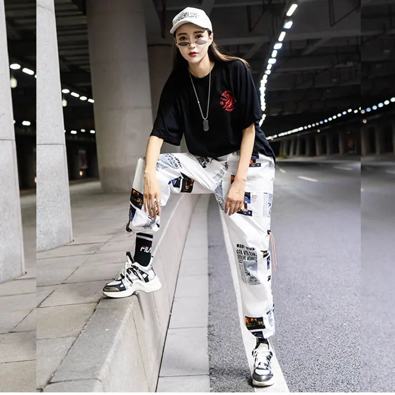 Брюки мужские свободного покроя в стиле хип-хоп, джоггеры, штаны с принтом, уличная одежда, брюки-султанки до щиколотки, Спортивная повседневная одежда в стиле Харадзюку