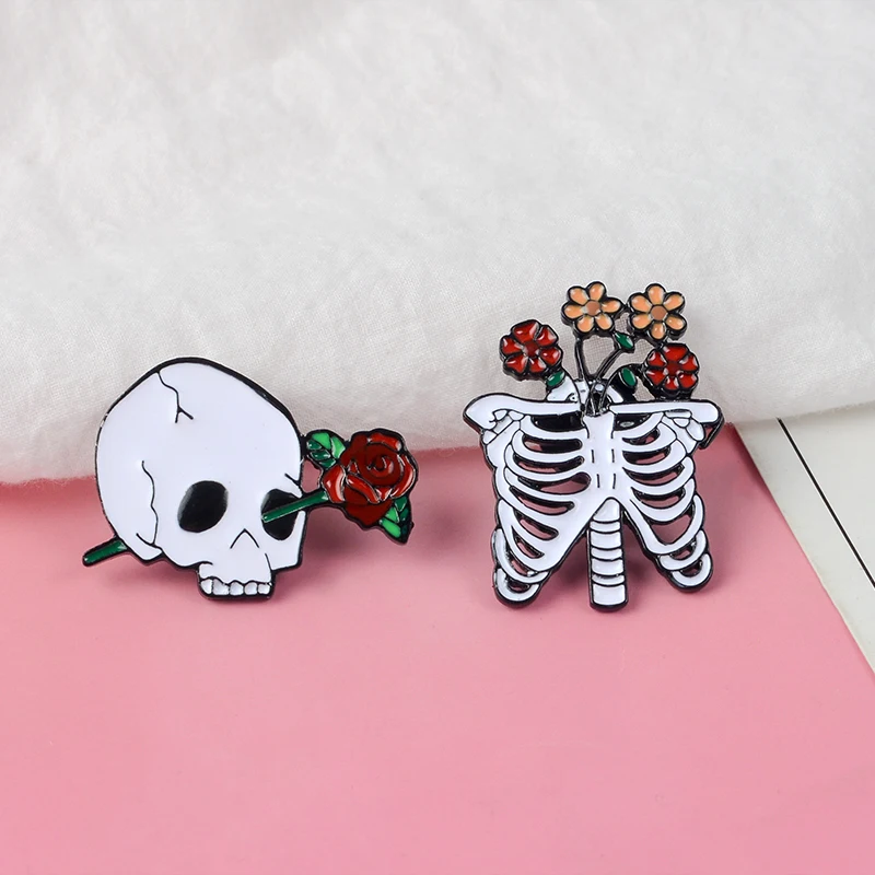 Эмалированные заколки для лацканов в виде черепа, скелета, развалив...