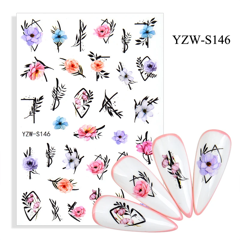 1 лист 3D Цветочный дизайн ногтей самоклеющиеся наклейки сушеные цв...