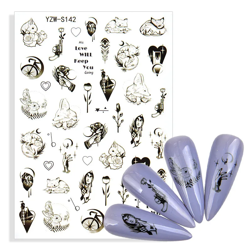 1 шт. наклейки для ногтей с черными чернилами самоклеющиеся наклейк...