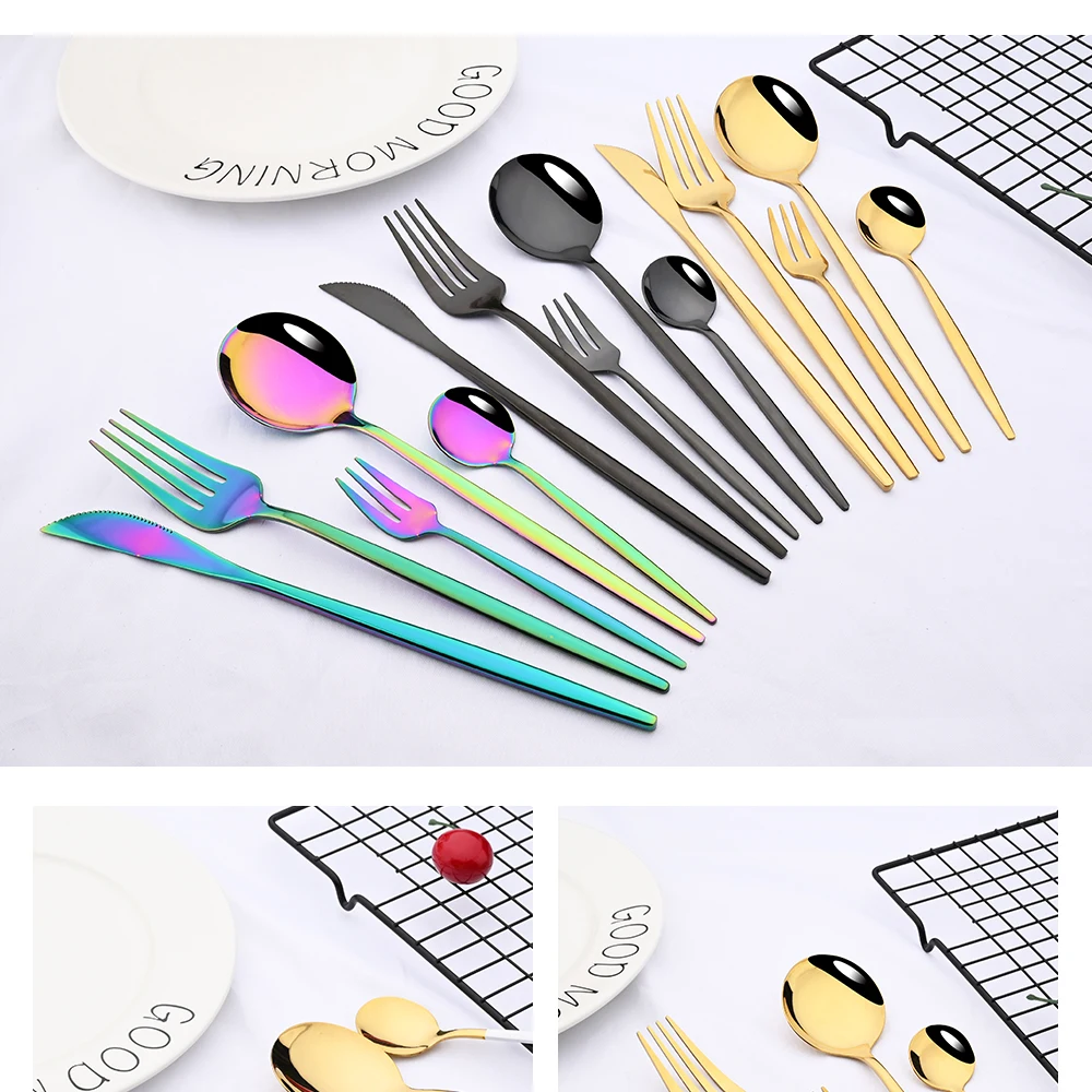 Набор столовой посуды из нержавеющей стали, нож, вилка, ложка, Стол...