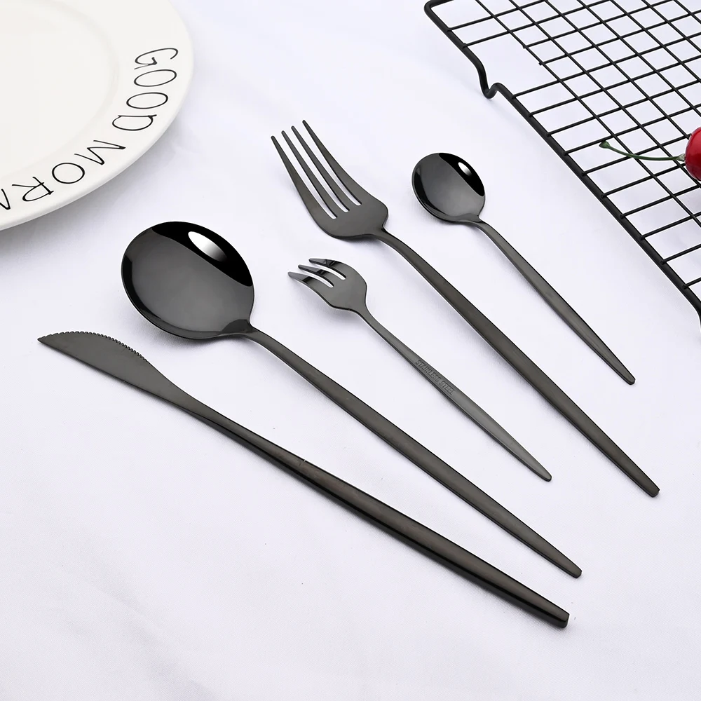 Горячая Распродажа, 30 шт., зеркальная черная столовая посуда, брикет, вилка из нержавеющей стали, брикет, кухонный Домашний набор столовых приборов