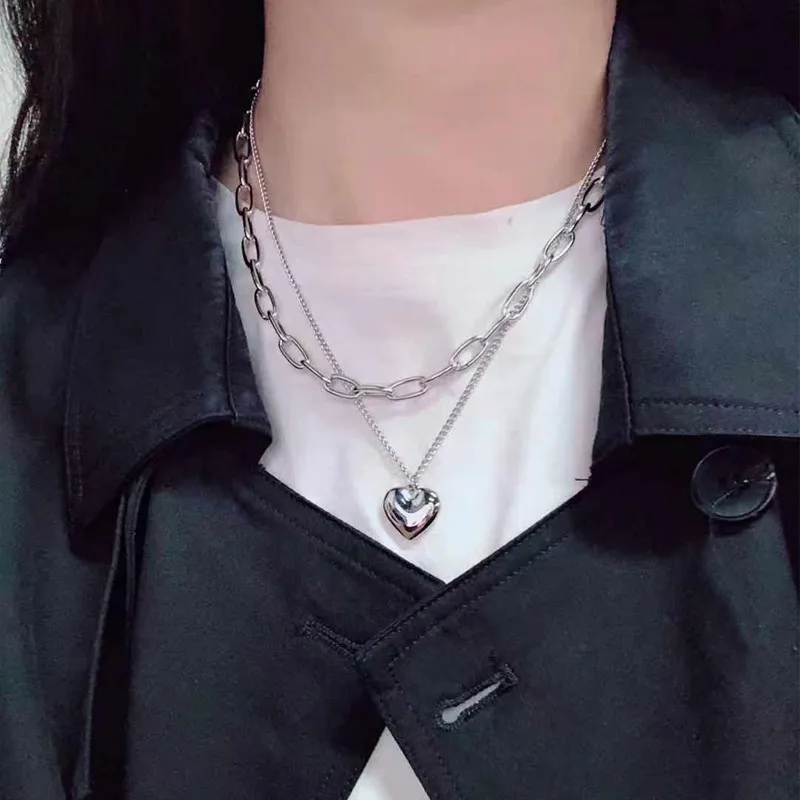 Ожерелье для женщин золотого и серебряного цвета, Двухслойное ожерелье, ювелирное изделие для шеи, кулон в виде любовного сердца, готическое ожерелье, оптовая продажа