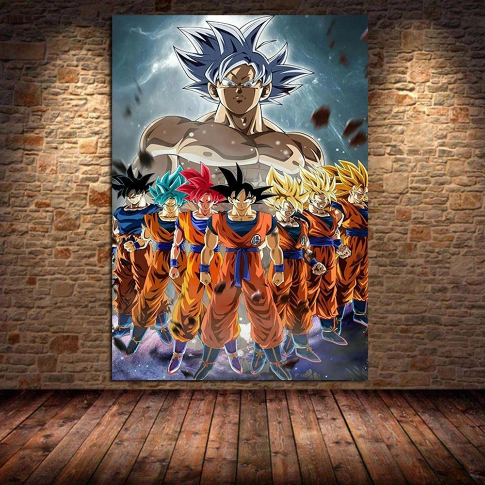 Плакат в стиле японского аниме, мультфильм Dragon Ball, холст, наст...