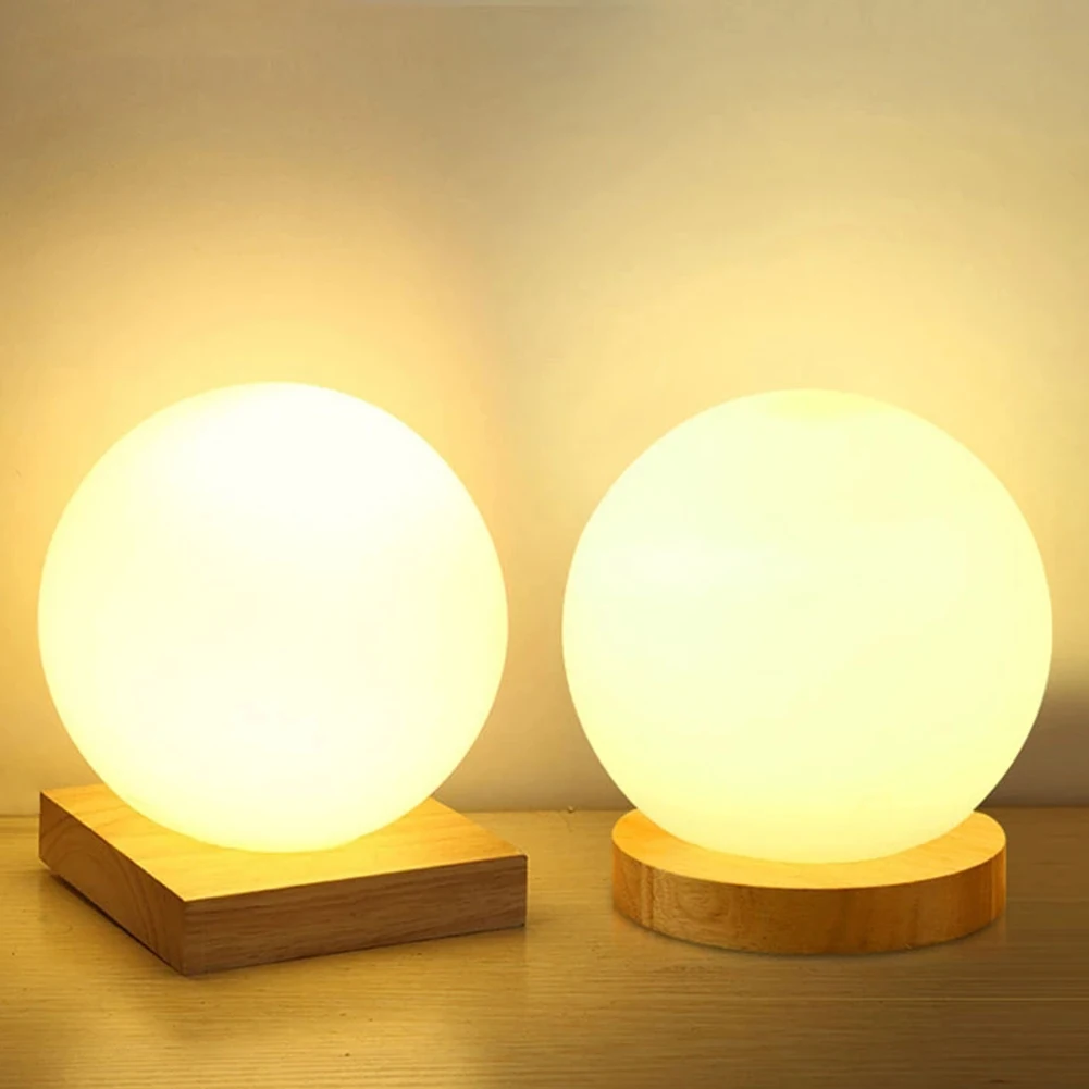 Деревянный стеклянный светодиодный светильник для спальни, прикроватный светильник с регулируемой яркостью, защищенный от глаз, для чтения, теплый светодиодный светильник с вилкой США