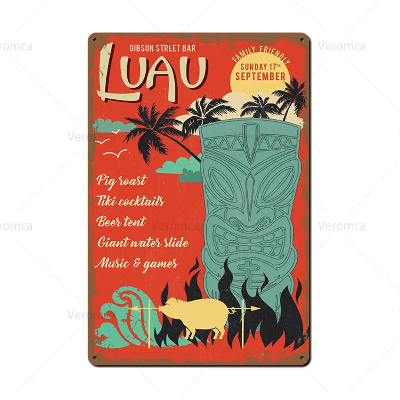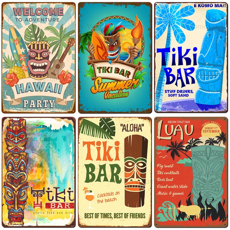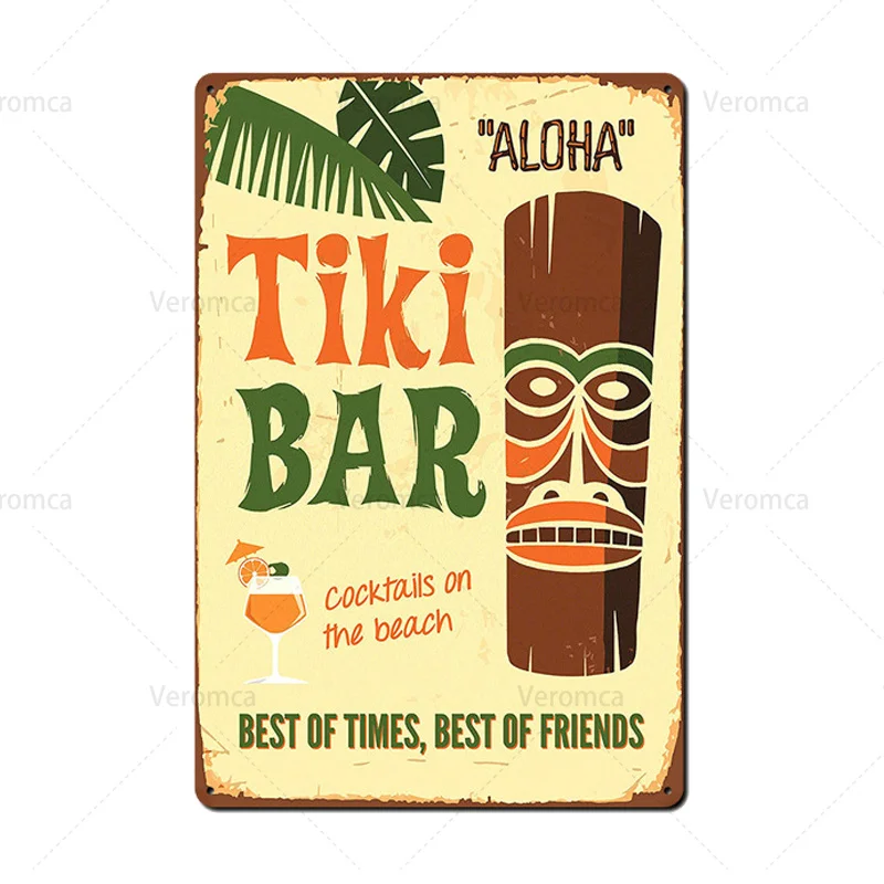 Постер Aloha Tiki Bar, Жестяная Табличка в винтажном стиле для пляж...