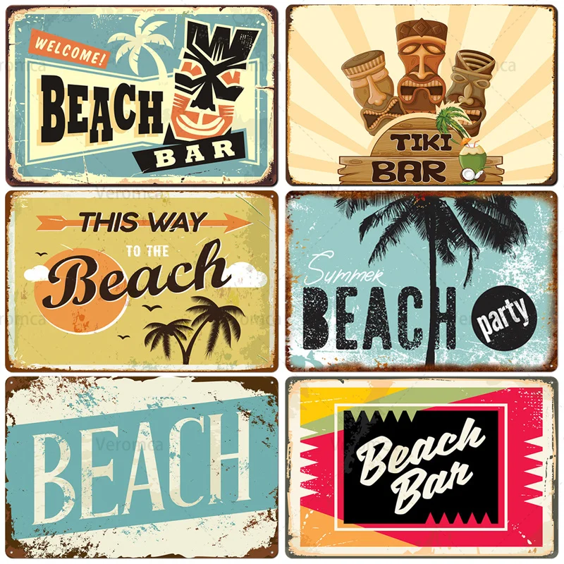 Металлический знак, украшение для пляжа, жестяной знак ржавчины, на...