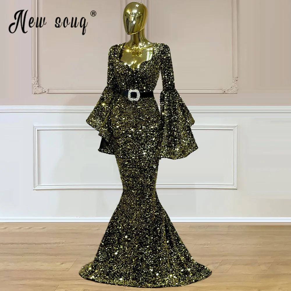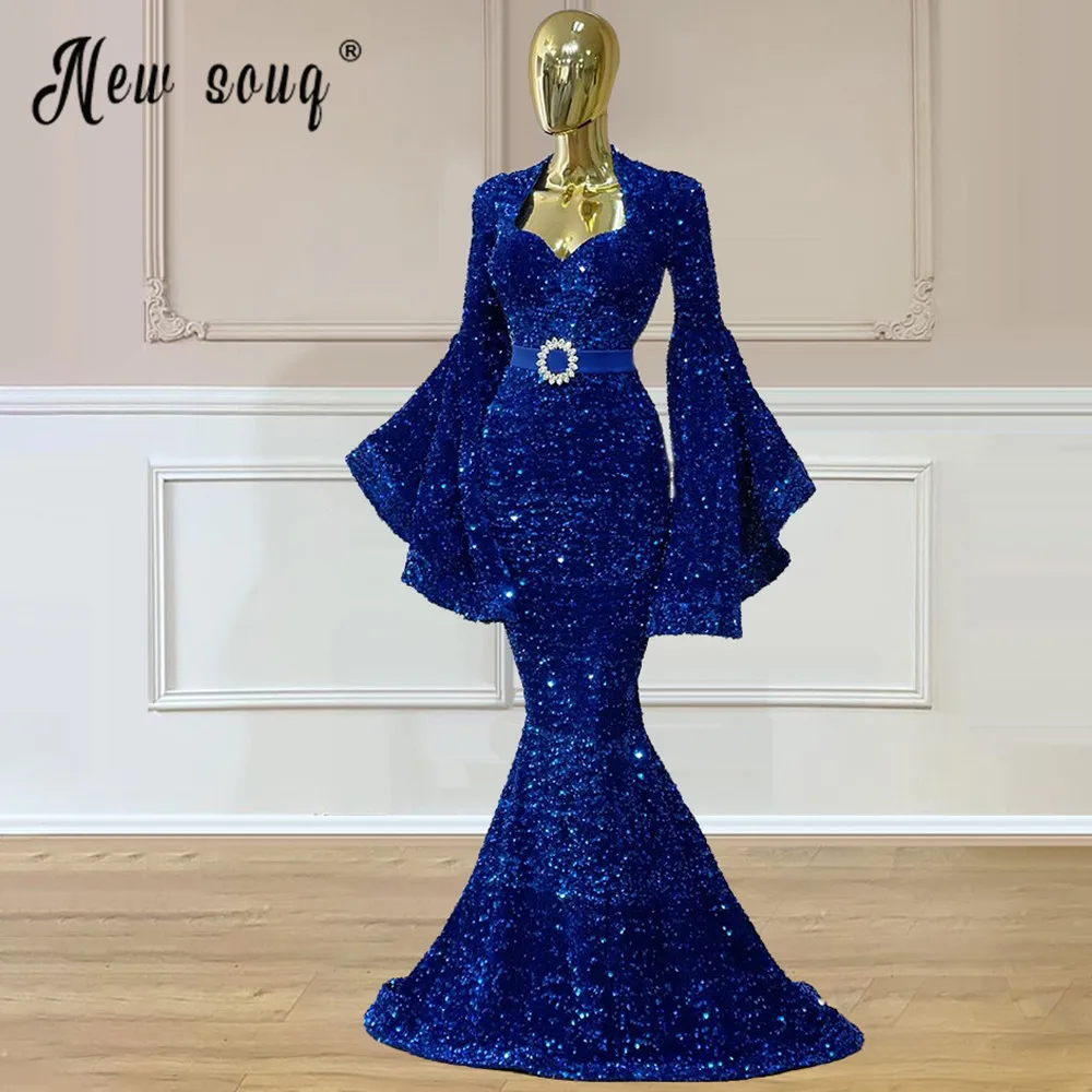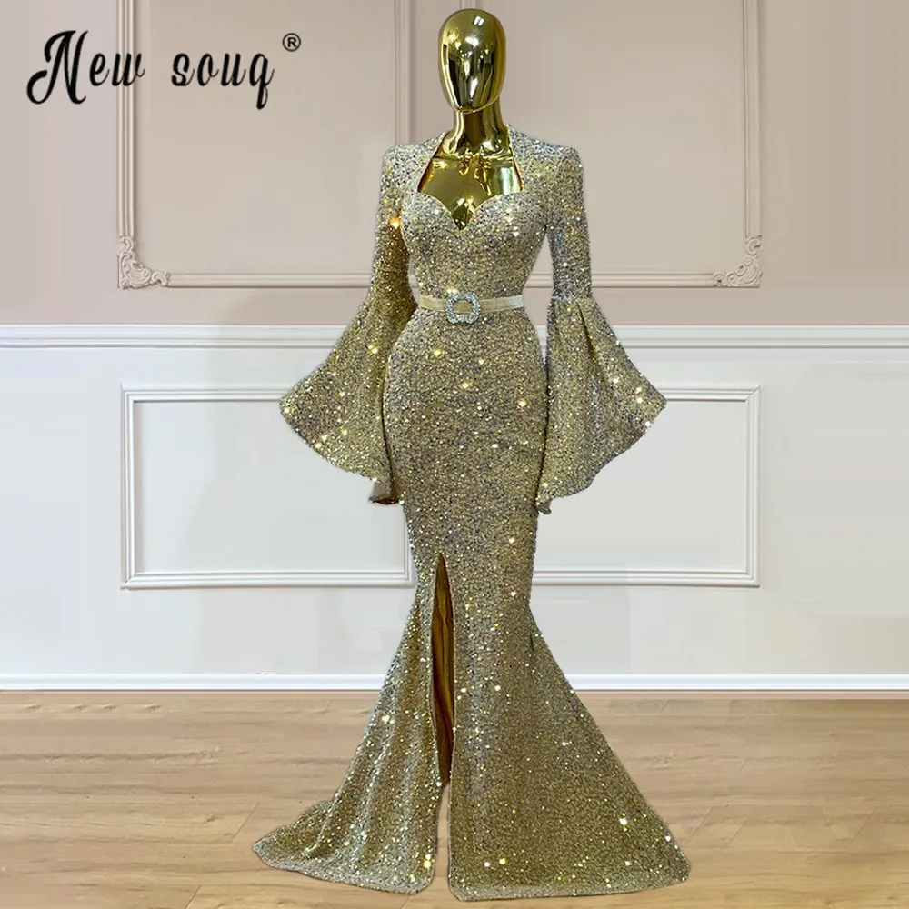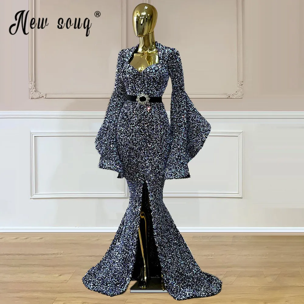 Блестящие вечерние платья с длинным рукавом 2021, платья русалки в ...
