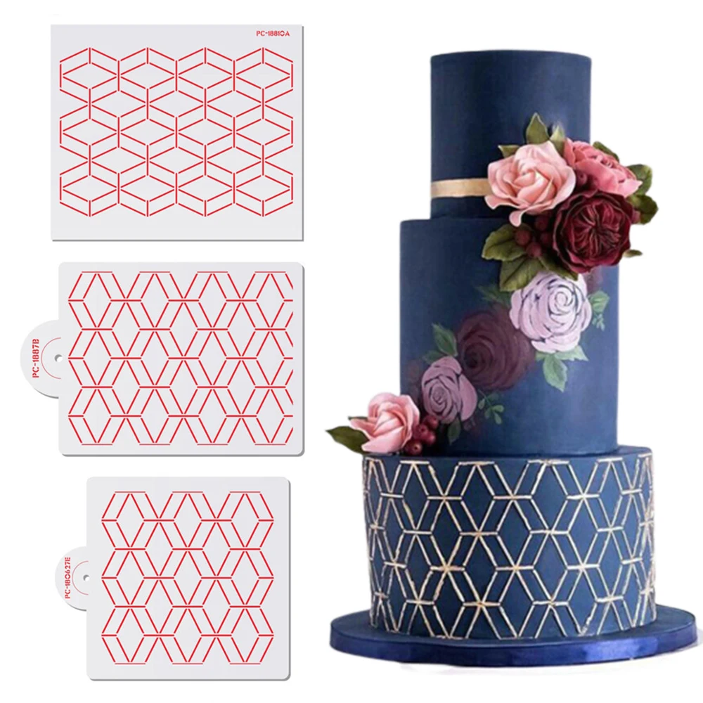 Геометрический трафарет для торта с ромбовидным узором, кружевная рамка для торта, шаблон сделай сам, форма для рисования торта, форма для распыления, форма для помадки