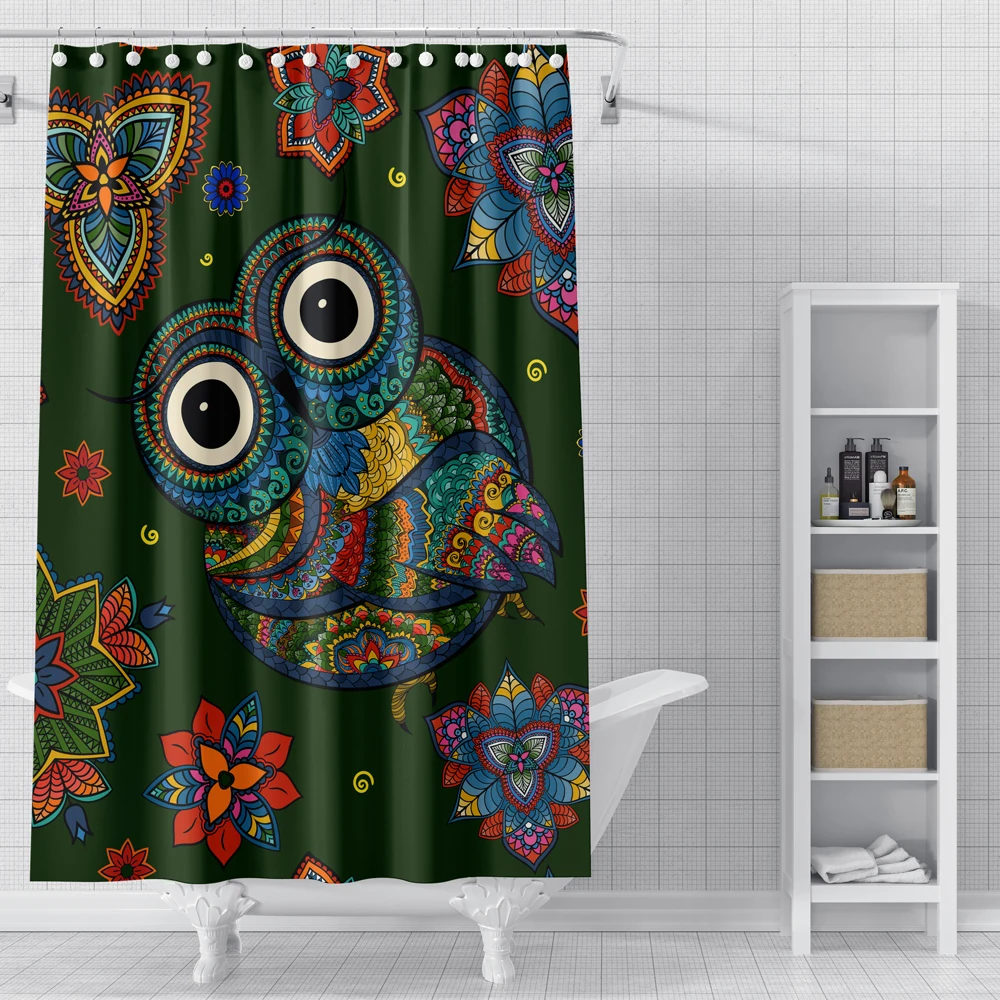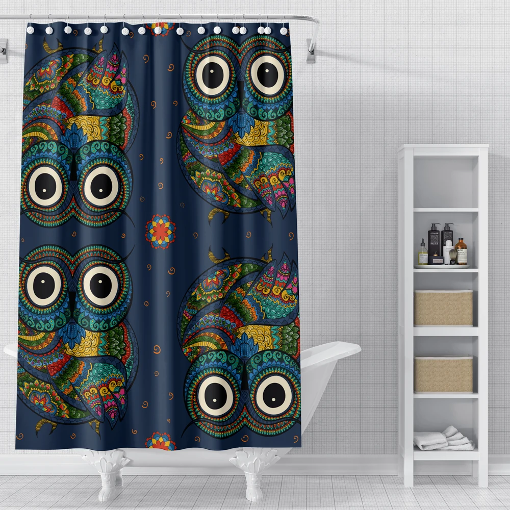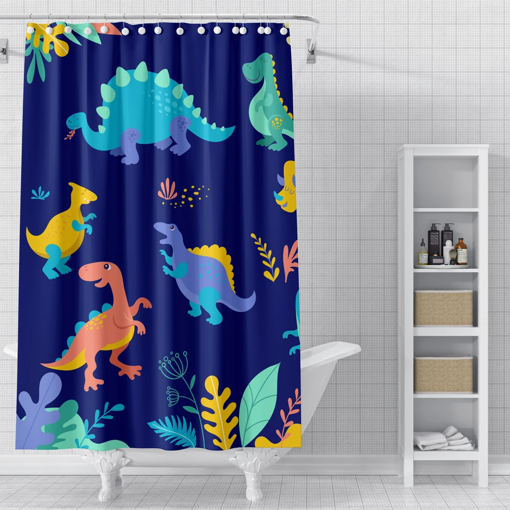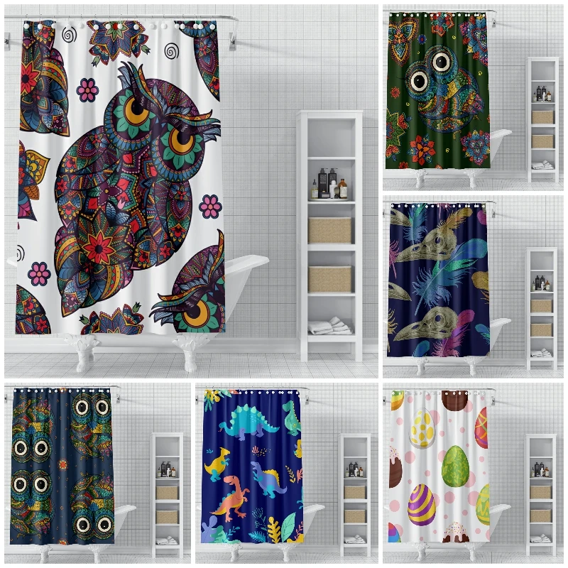 Занавески для душа с милым мультяшным принтом животных, Сова и динозавр, Полиэстеровые непромокаемые водонепроницаемые декоративные занавески для ванной комнаты
