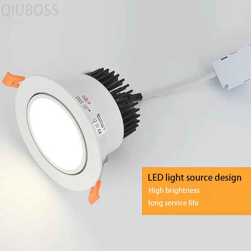 Встраиваемый светодиодный светильник QIUBOSS s, 220 В, 110 В, потолочный светильник с регулируемой яркостью, светодиодный прожектор s 15 Вт, 18 Вт, COB, светодиодный светильник для ванной, лофта