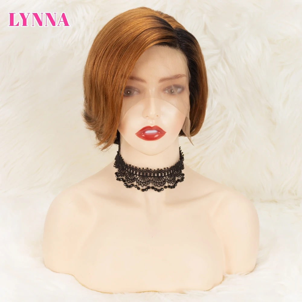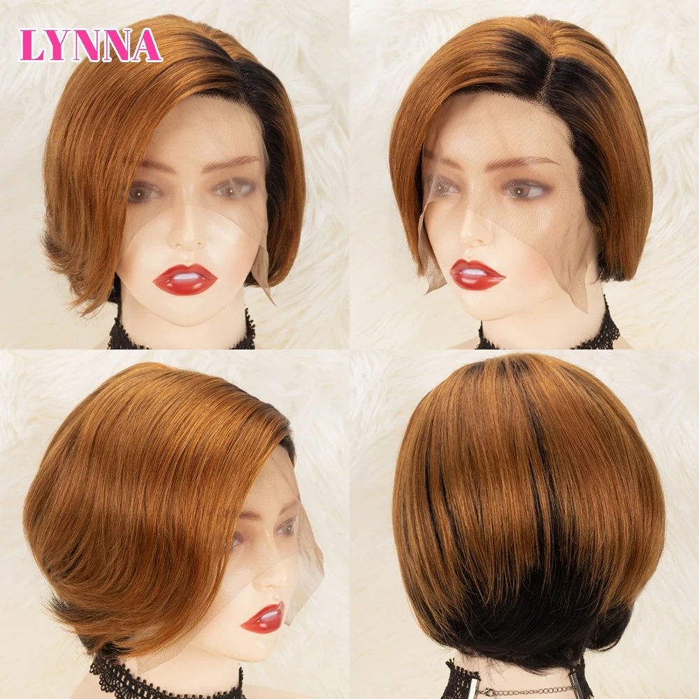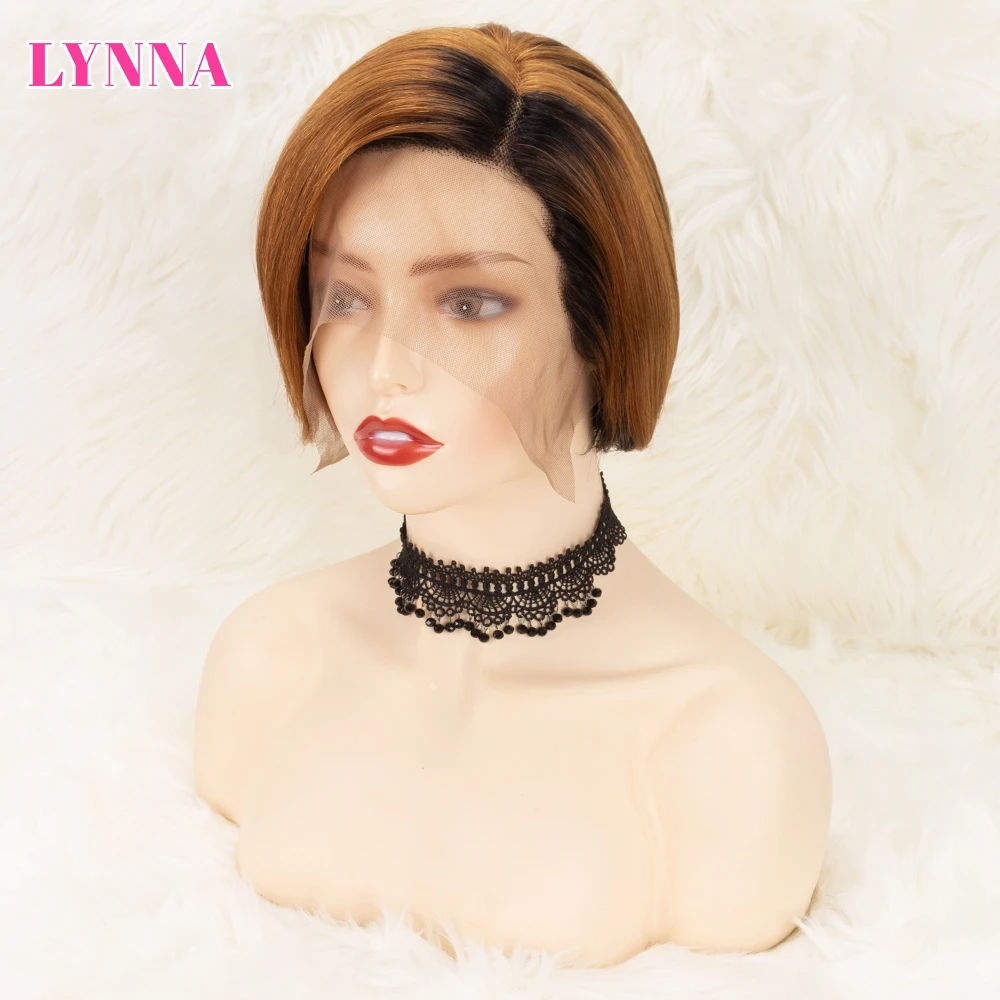 Парик на сетке спереди, парики без повреждений для женщин, парик из человеческих волос с вырезом фея, Короткие парики из человеческих волос, парики на сетке T-Part 13x1 4x1 Black Ombre