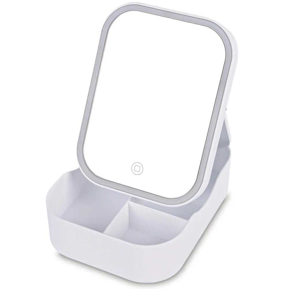 -С функцией хранения-это зеркало для макияжа 2 в 1. В дополнение к регулируемой яркости, нижняя часть зеркала-это ящик для хранения. После макияжа вы можете вставить помаду непосредственно в маленькую коробку для хранения, чтобы сэкономить место на туалетном столике. Если вы выходите или путешествуете, вы можете сложить зеркало в чемодан