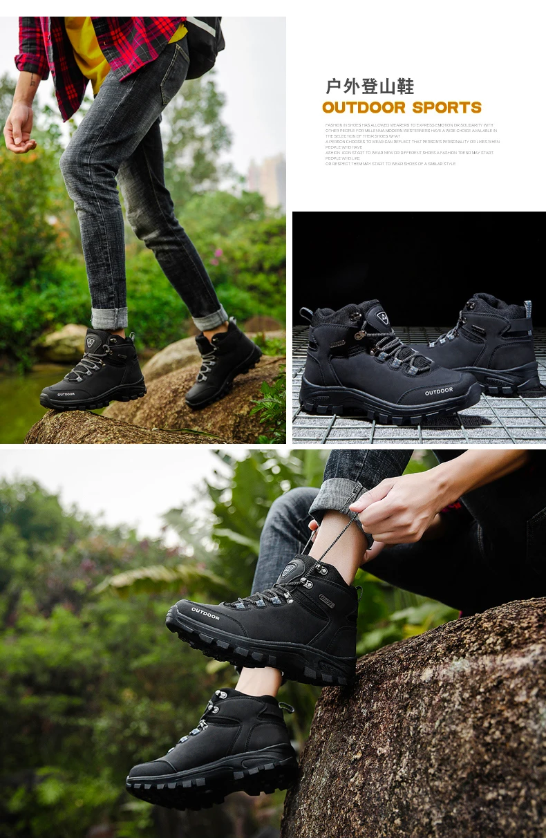 2021 уличная походная обувь зимние мужские ботинки теплые зимние ботинки кожаные водонепроницаемые мужские кроссовки уличные мужские походные ботинки Рабочая обувь