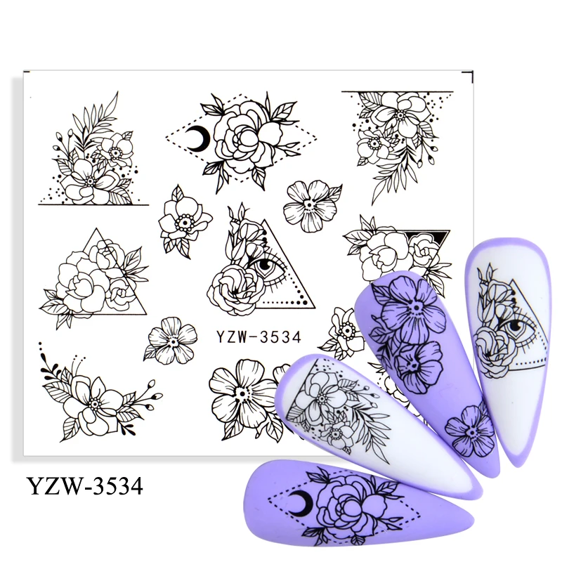 Черные цветы наклейки для ногтей набор ползунков Цветочные листья г...