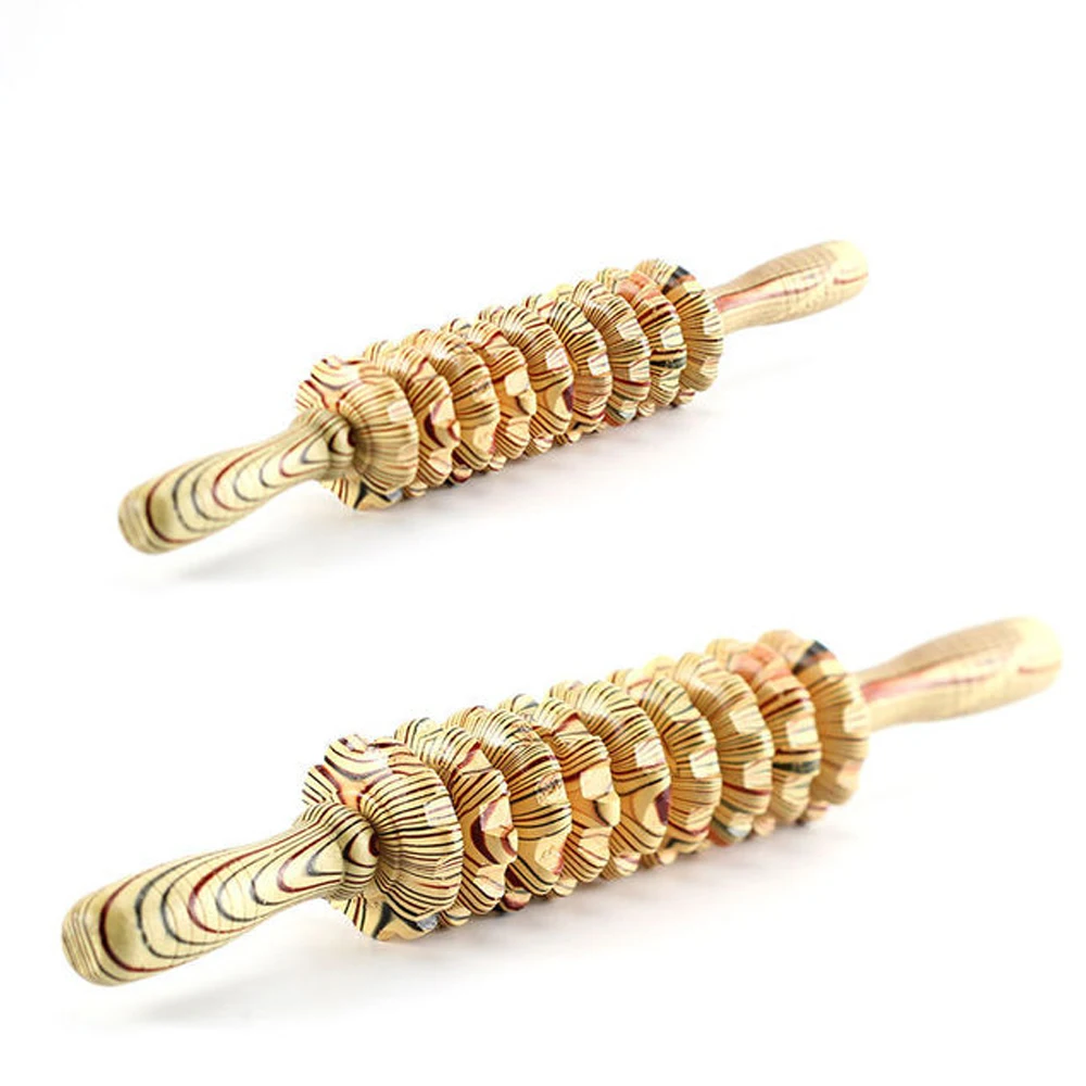 Деревянные ручные массажеры оснащены 9 вращающимися роликами, которые гладкие и прочные.