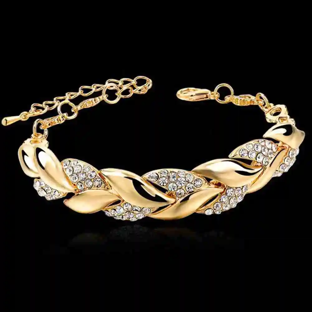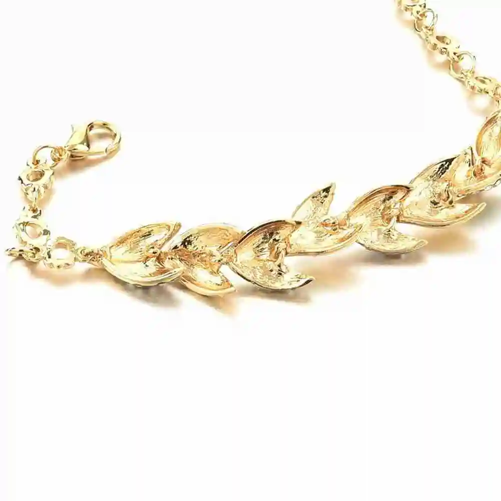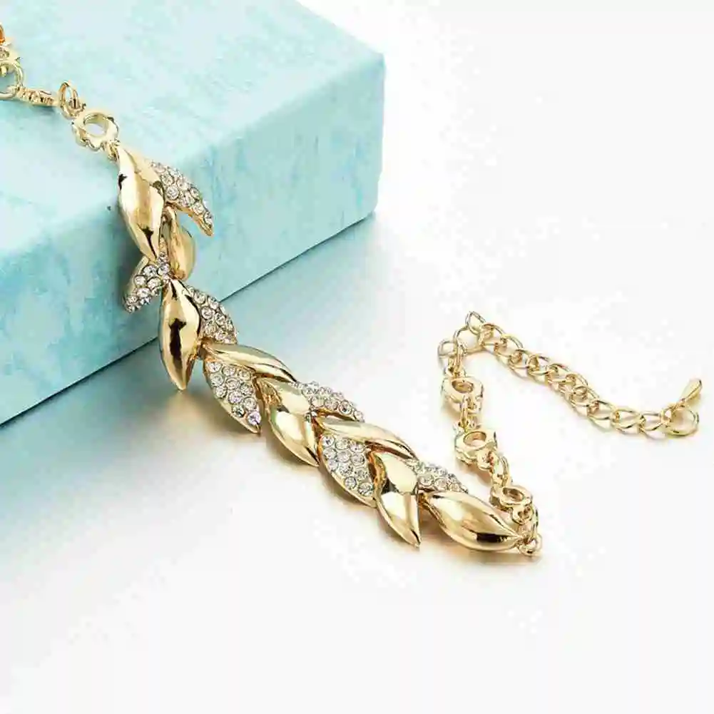 Женский браслет стразы в богемном стиле, элегантный винтажный браслет золотого цвета с листьями, свадебная бижутерия