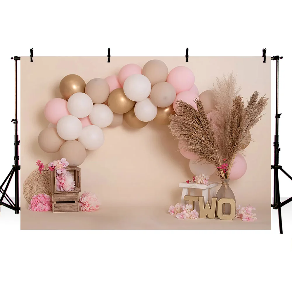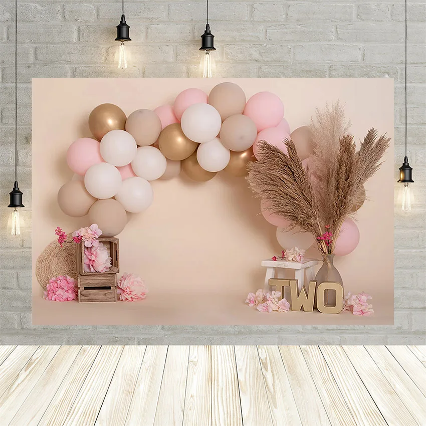 Avezano розовые воздушные шары девушка 2-й день рождения фон для фотографии богемный цветок тростник торт разбивать фон фото студия реквизит