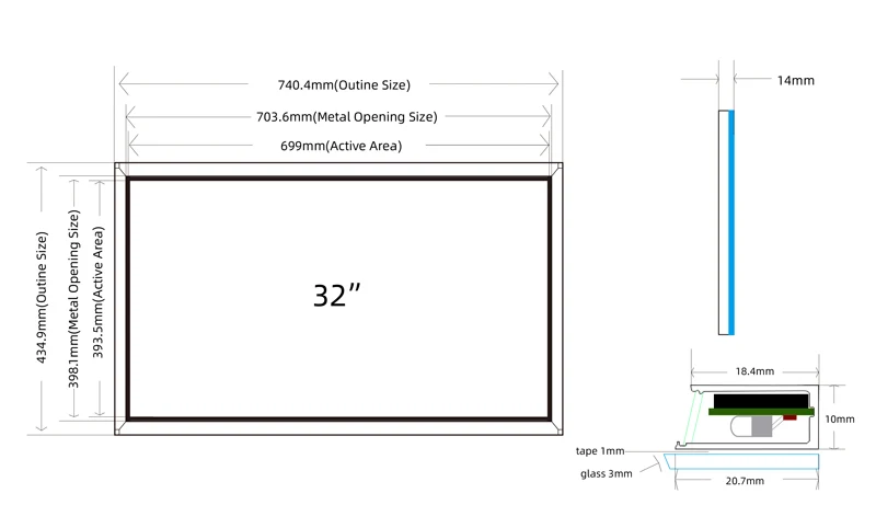 Инфракрасная сенсорная панельИК сенсорный экран представляет собой сенсорную рамку, которая обычно устанавливается перед экраном дисплея. Рамка объединена с печатной платой, которая содержит линию ИК-светодиодов и фототранзисторов Скрытый за рамкой thetouch frame. Каждый из ИК-светодиодов и фототранзисторов настроен с противоположных сторон для создания сетки невидимого инфракрасного светильник. Безель защищает детали от работыСупер преимущества для 32 дюймов 20 точек IR multi touch screen:10 точек касания (мультитач)Поддержка увеличения/уменьшения, вращение дисплеяUSB-интерфейс, без дисковода, подключи и играйПоддержка 20 точек касания под windows 7, Windows 8,Windows 10 и AndroidПоддержка одного касания под системами WindowsXP, Linux и MacOSВыдерживает тяжелые условия окружающей средыСтабильная калибровка без дрейфаАнтивандалостойкие и износостойкие экраны, идеально подходят для надежных работПроизводительность без параллакса для ЖК-дисплеевГерметичный против загрязненийМожно использовать в различных светильник, в помещении и на улице