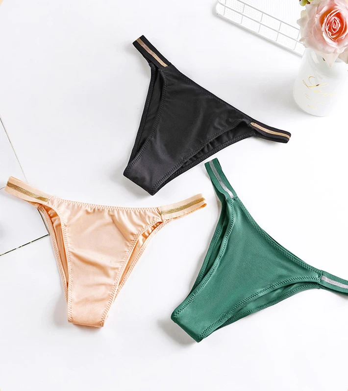 Атласные женские трусики, комплект из 3 шт.компл., сексуальные экзотические бесшовные мягкие хлопковые стринги, стринги, бикини, женское нижнее белье с низкой посадкой