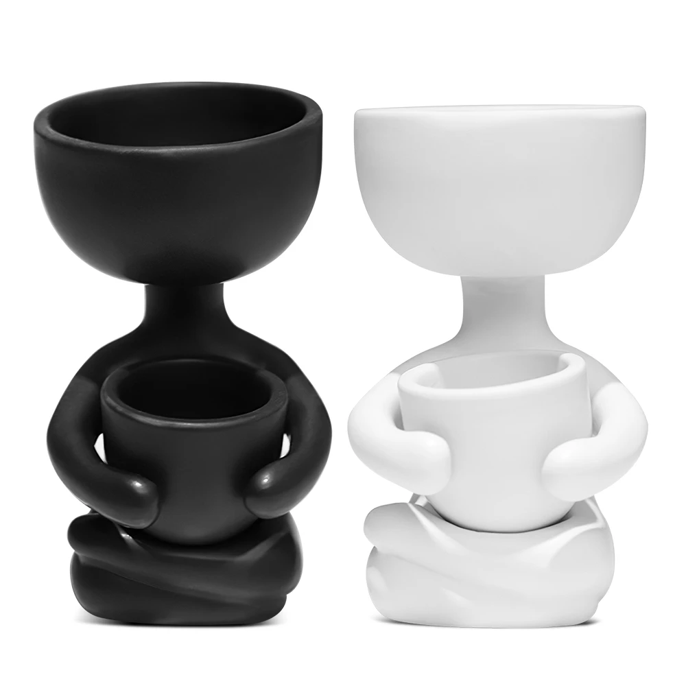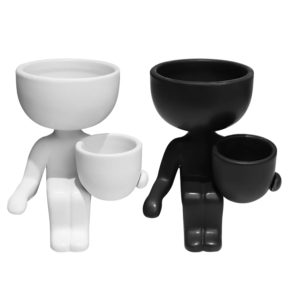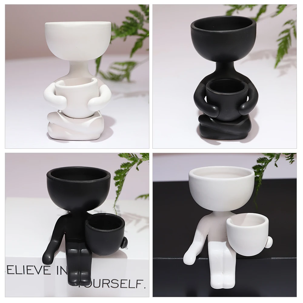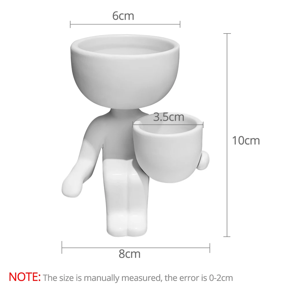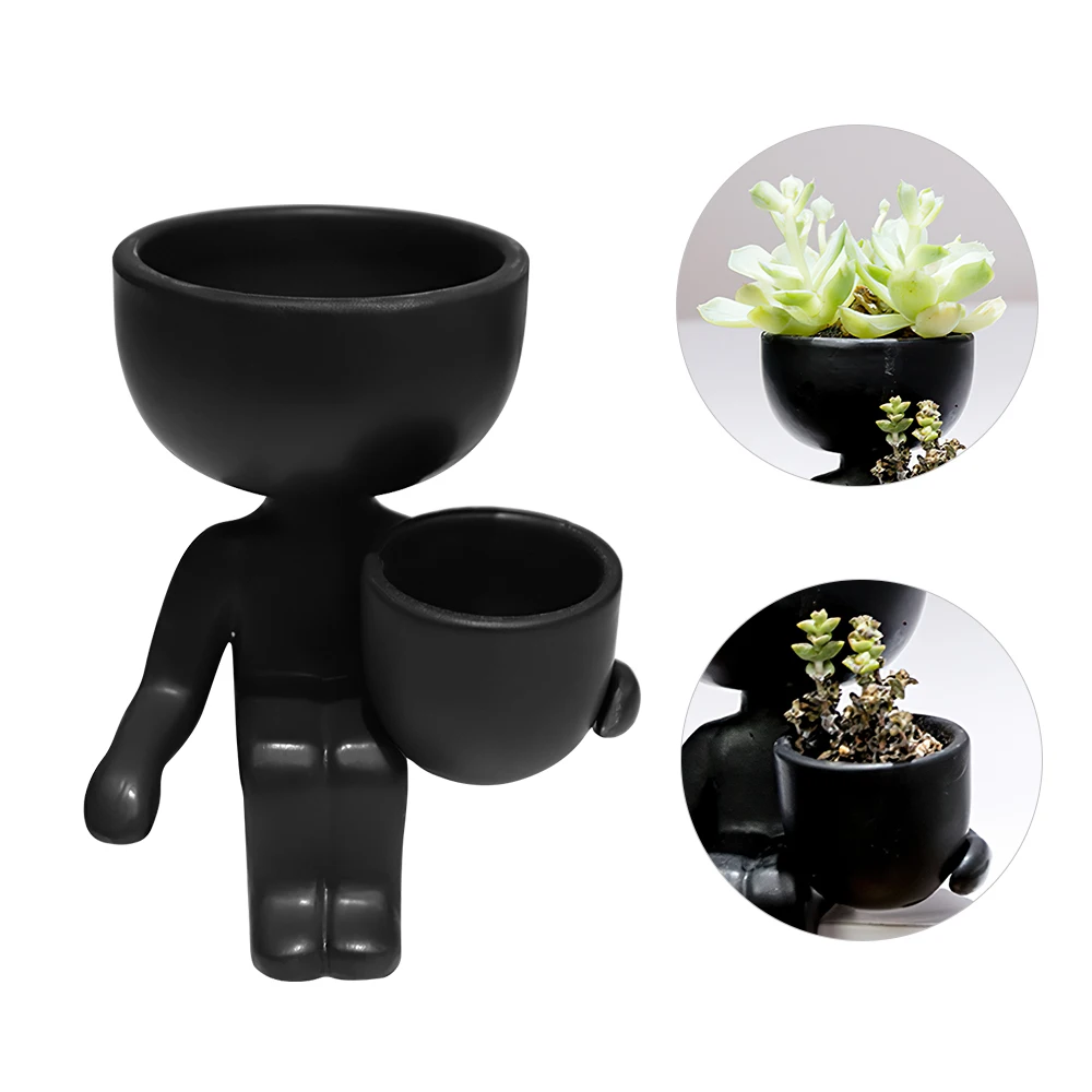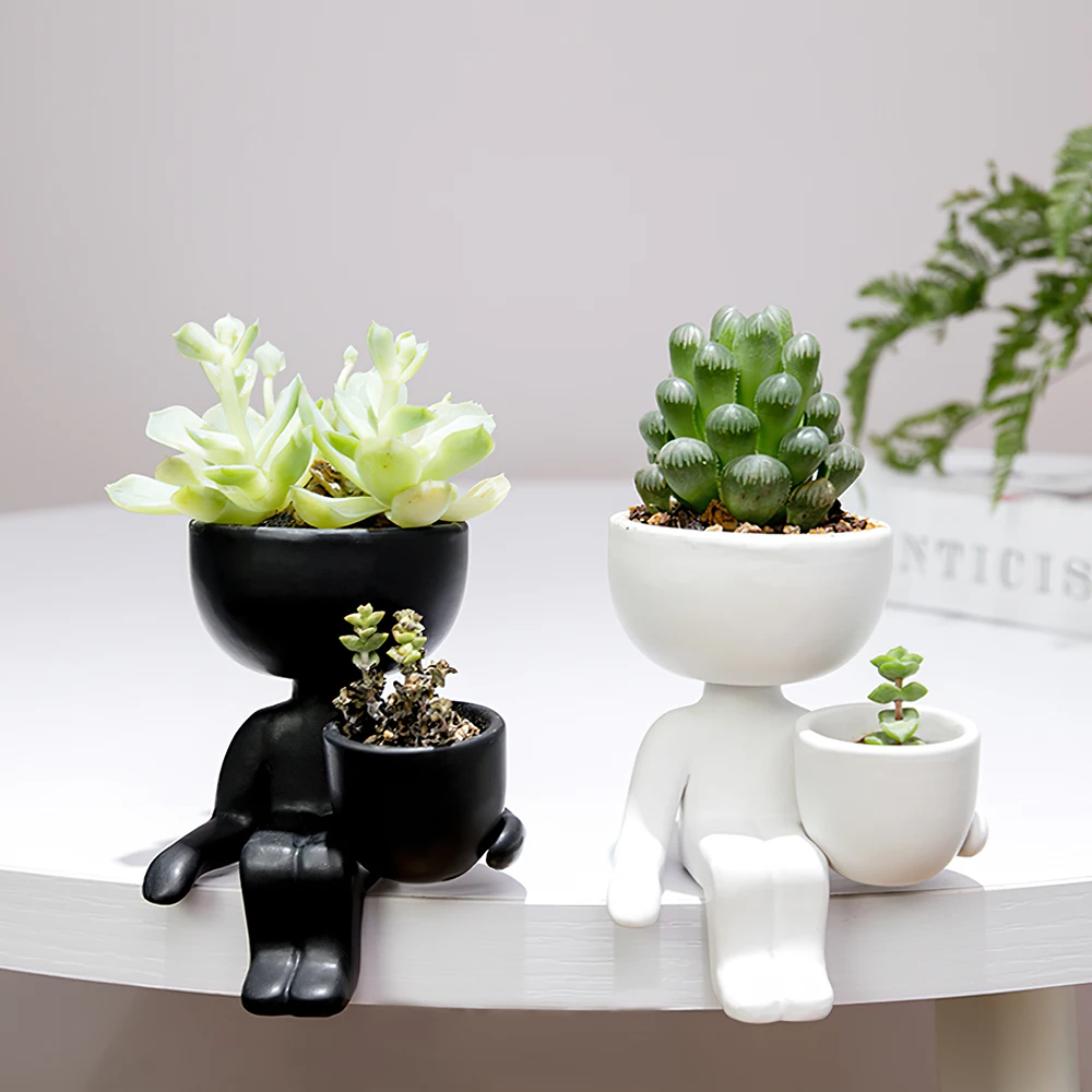 1. Керамические креативные горшки для цветов небольшого размера человеческой формы прекрасно украсят ваш балкон, подоконник, обеденный стол, стол, стол и комнату. 2. Симпатичный дизайн сидящей гуманоидной кашпо более уникален и привлекателен. Идеально подходит для трав, суккулентов, кактусов, комнатных трав и искусственных растений. 3. Этот горшок можно разместить на столе, на солнечном окне, а также на цветущем горшке. Предназначен для вашей семьи, друзей и любителей растений.