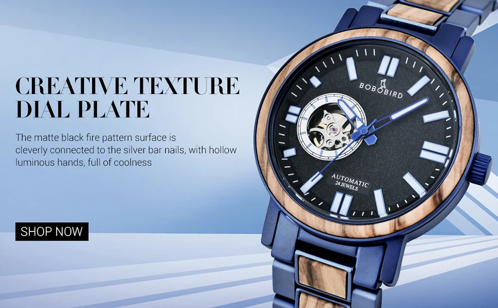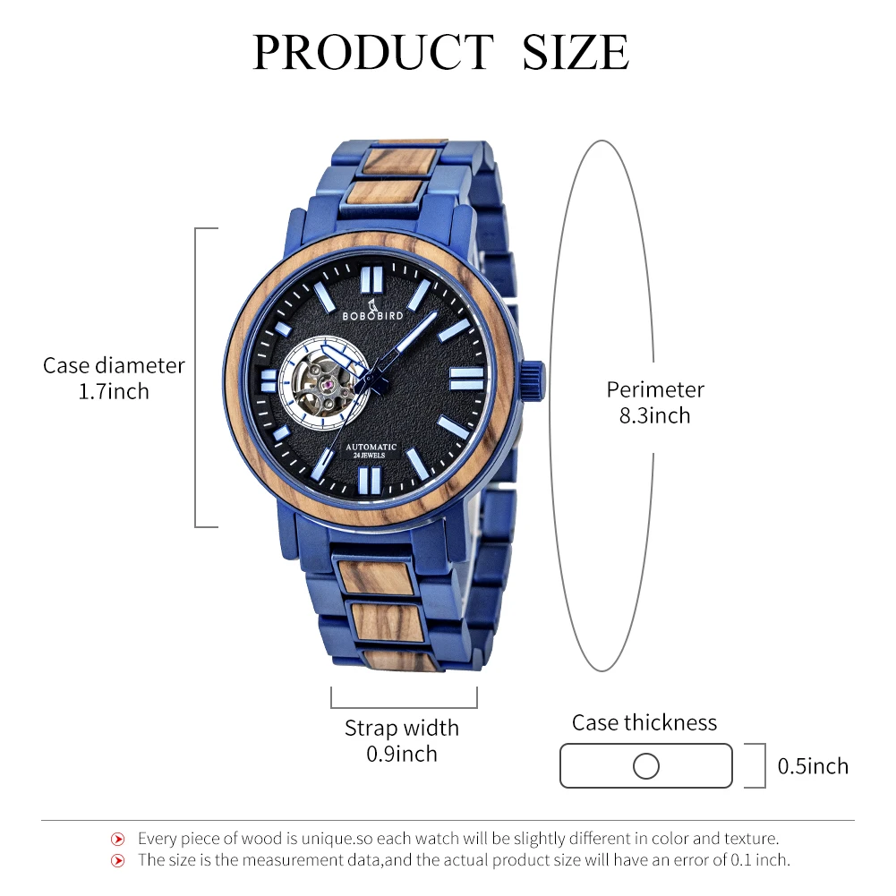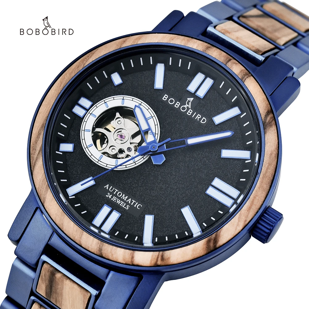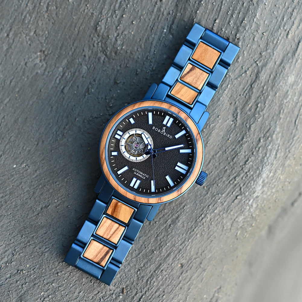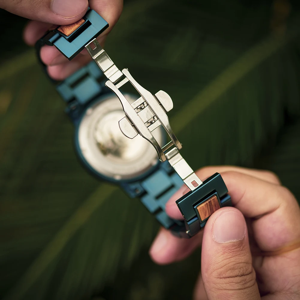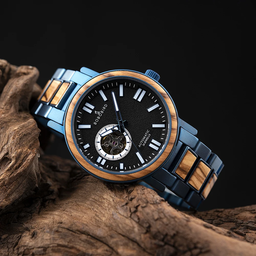 Часы мужские механические из нержавеющей стали с автоподзаводом и деревянным ремешком