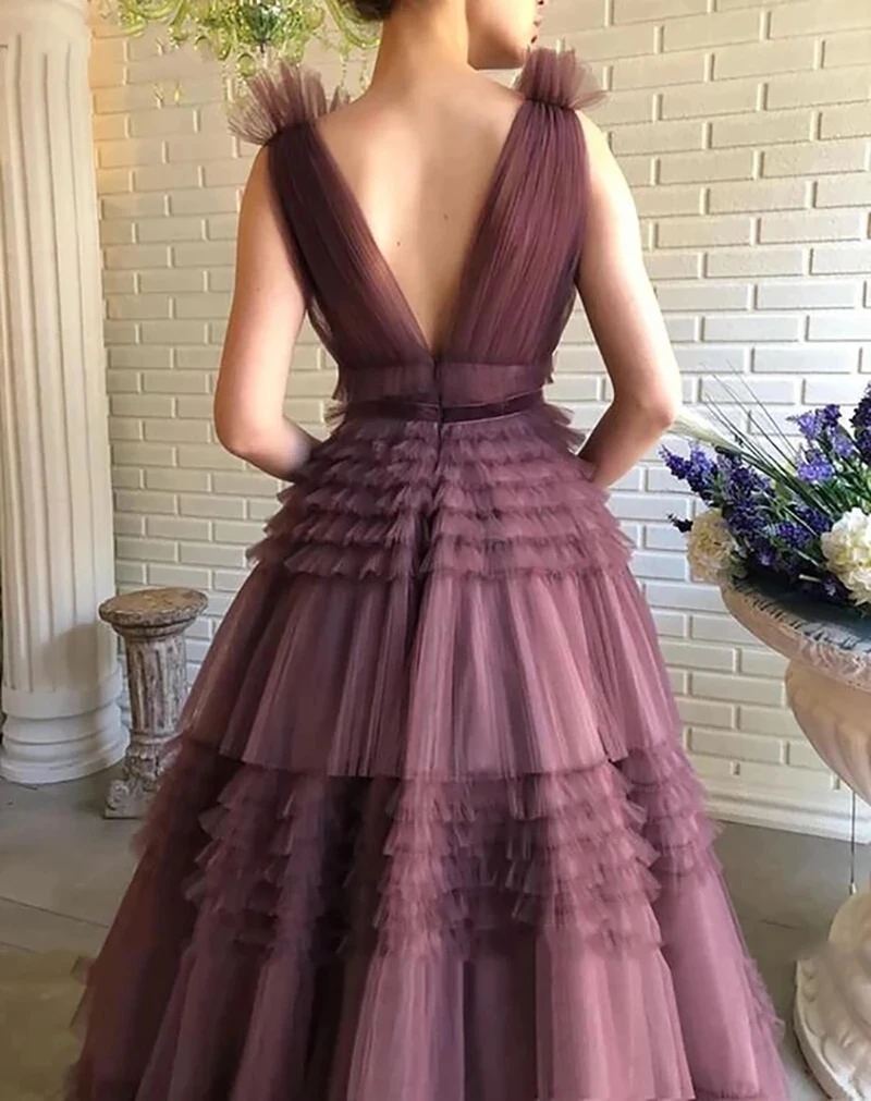 Женское длинное вечернее платье, элегантное Тюлевое плиссированное платье-трапеция до пола с открытой спиной и V-образным вырезом, модель 2022 на заказ