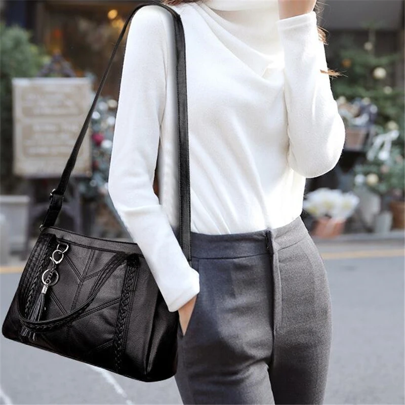Модные сумки с подвесками, женская сумка, брендовая сумка через плечо из искусственной кожи, вместительная сумка на плечо, роскошная женская сумка с ручками, сумки