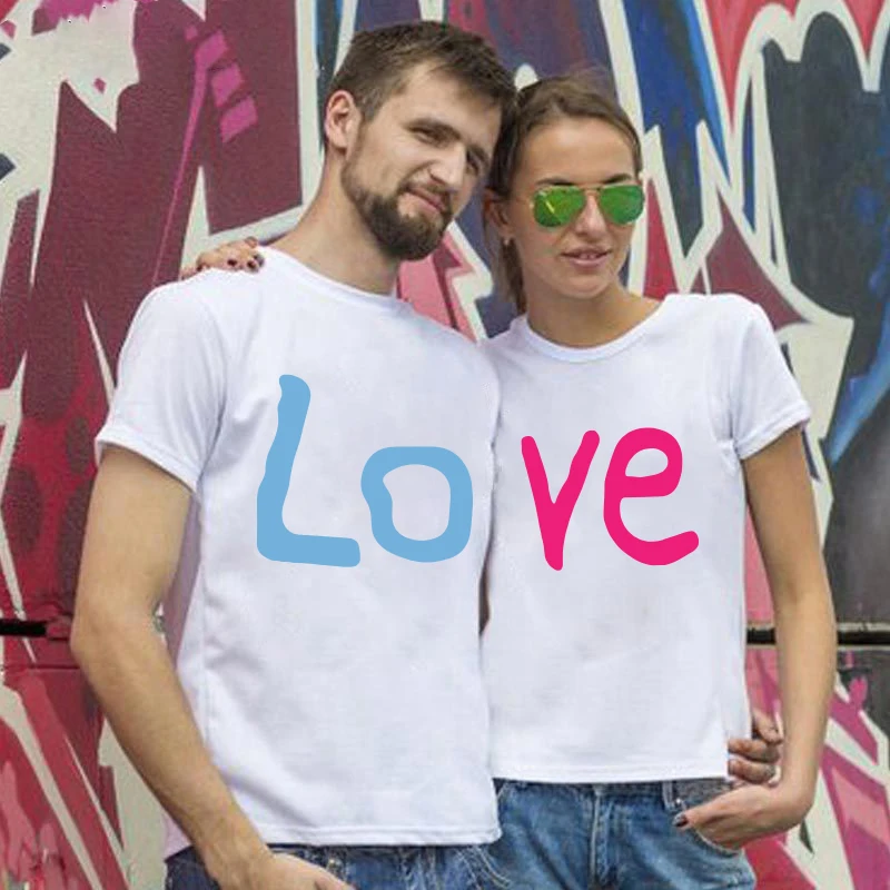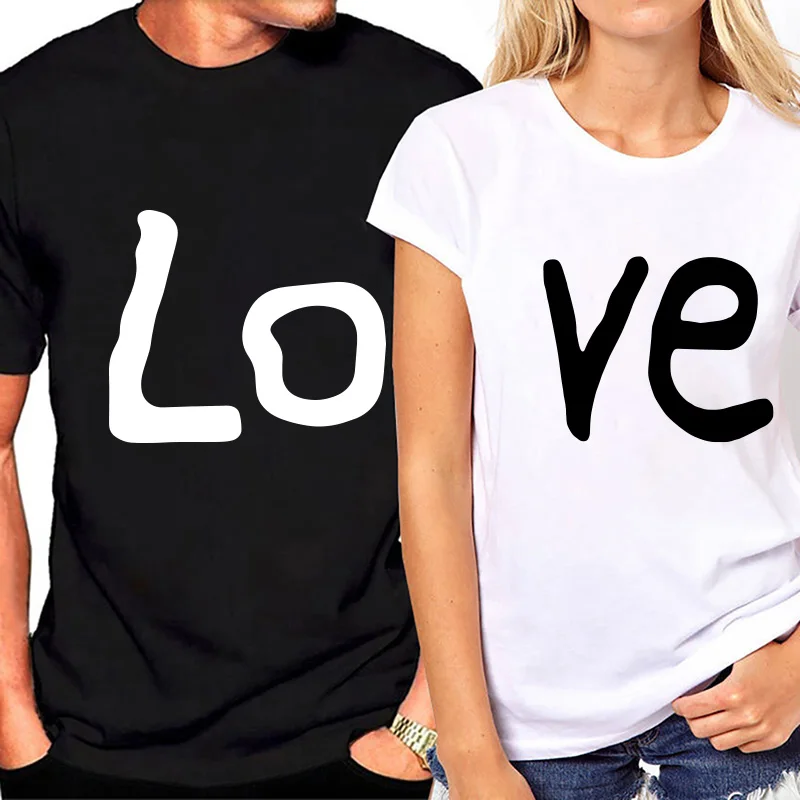 Футболка с принтом LOVE для влюбленных, Повседневная рубашка с коро...