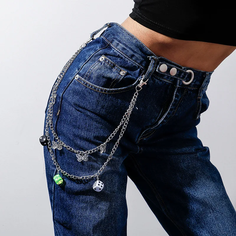 Цепочка на талию для мужчин и женщин, милая разноцветная акриловая цепочка на пояс в стиле хип-хоп, Радужная, с цветами, для брюк, ювелирные изделия в стиле панк, 2021