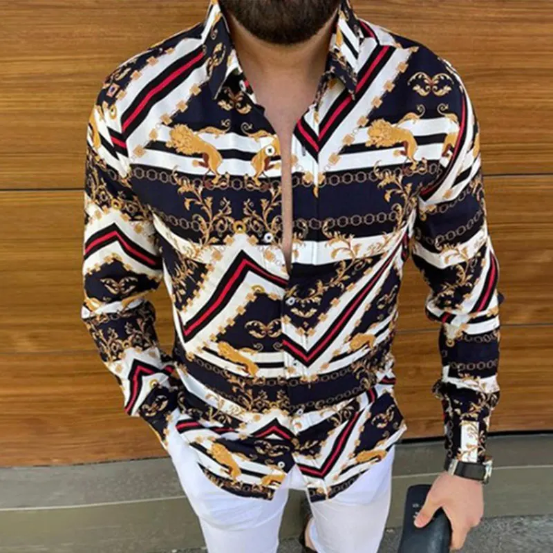 Мужская однобортная рубашка с принтом, Повседневная модная рубашка ...