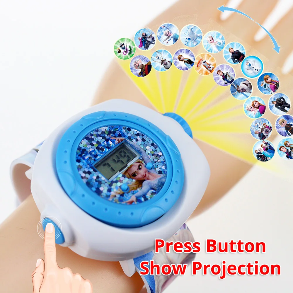 Детские часы принцессы Эльзы для девочек, резиновые цифровые часы с 3d-проекцией Микки, детские часы, наручные часы для мальчиков, подарок, Прямая поставка