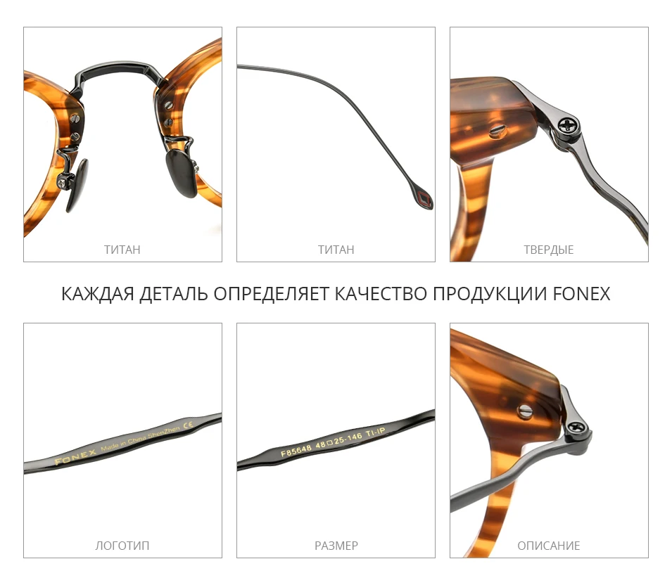 FONEX Оправа для очков МужскаяЖенская квадратная из титана и ацетата